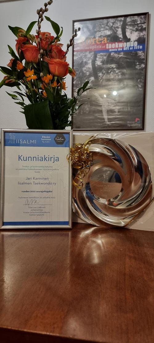 Kuten aiemmin kirjoitin niin tunnen olevani etuoikeutettu, kun olen saanut toimia hyvän mielen kamppailukoulun puheenjohtajan tehtävissä useammankin kauden. Nyt on hyvä hetki katsoa hiukan taaksepäin mitä kaikkea olemme yhdessä saavuttaneet. Olen ollut seuratoiminnassa eli toiminut ohjaajana ja ollut mukana hallinnossa suurimman osan yli 20-vuotisesta lajiurastani, pääosin Iisalmen Taekwondossa mutta muutaman vuoden myös Kuopion Taekwondon riveissä. Iisalmen Taekwondon puheenjohtajana toimin ensimmäisen kerran kausina 2009 - 2012. Tuolloin sain olla todistamassa pj:n paikalta mm., kun seura käynnisti junioritoiminnan sekä saavutti Nuoren Suomen laatusinetin (nyk. tähtiseura). Tuolle ajalle mahtuu toki paljon muitakin rakkaita muistoja. Seurasydän on sykkinyt vahvana aina ja vuonna 2019 muutaman seuralaisen kannustuksesta innostustuin asettumaan ehdolle puheenjohtajana paikalle. Heille suuri kiitos, sillä onhan tämä matka ollut taas mahtavaa ja takana on muistoja, jotka taatusti kannan mukanani loppuelämän ajan. Itselle päällimmäisenä mieleen nousee luonnollisesti perhetaekwondon treeneissä käyminen sekä uuden tenavataekwondon käynnistäminen, koska ne ovat mahdollistaneet harrastamisen oman lapsen kanssa. Seurasta on todellakin kasvanut kokoperheen hyvän mielen kamppailukoulu. Lasten harjoituksia on kolmessa ikäryhmässä, nuorille ja aikuisille on on teemavuoronsa sekä nyt uusimpana saatiin oma ryhmä senioreillekin. Perhetaekwondossa pääsee kaikki harjoittelemaan yhdessä. Palkitsevinta on ollut se, kun on saanut seurata seuran sekä sen harrastajien kasvua ja kehittymistä. Toki mukaan mahtuu pitkä lista mukavia onnistumisia ja ikimuistoisia seuratapahtumia. Jälleen olen saanut kunnian olla todistamassa kehittymistä paraatipaikalta. Seuraan perustettiin työryhmä, jonka tavoitteena oli saavuttaa Olympiakomitean Tähtiseura-merkki myös aikuisten liikuntatoiminnasta. Niinpä vuonna 2020 Iisalmen Taekwondosta tuli ensimmäinen Suomen Taekwondoliiton laatuseura, jolle on myönnetty Tähtiseura-merkki sekä lasten ja nuorten että aikuisten toiminnasta. Tähtiseura-merkki on lupaus laadusta ja laatu onkin yksi seuran tärkeistä arvoista. Seuralla on todellakin väliä!