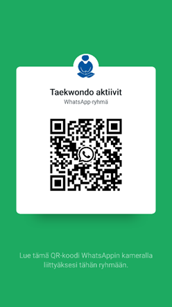 Iisalmen Taekwondo lomailee syyslomalla 13.10.-19.10., joten kalenterin mukaisia, ohjattuja harjoituksia ei ole syysloman aikana. Osa ohjaajista saattaa pitää satunnaisia harjoituksia ja niistä ilmoitetaan WhatsApp-ryhmässä, johon voit halutessasi liittyä alla olevan QR-koodin kautta.